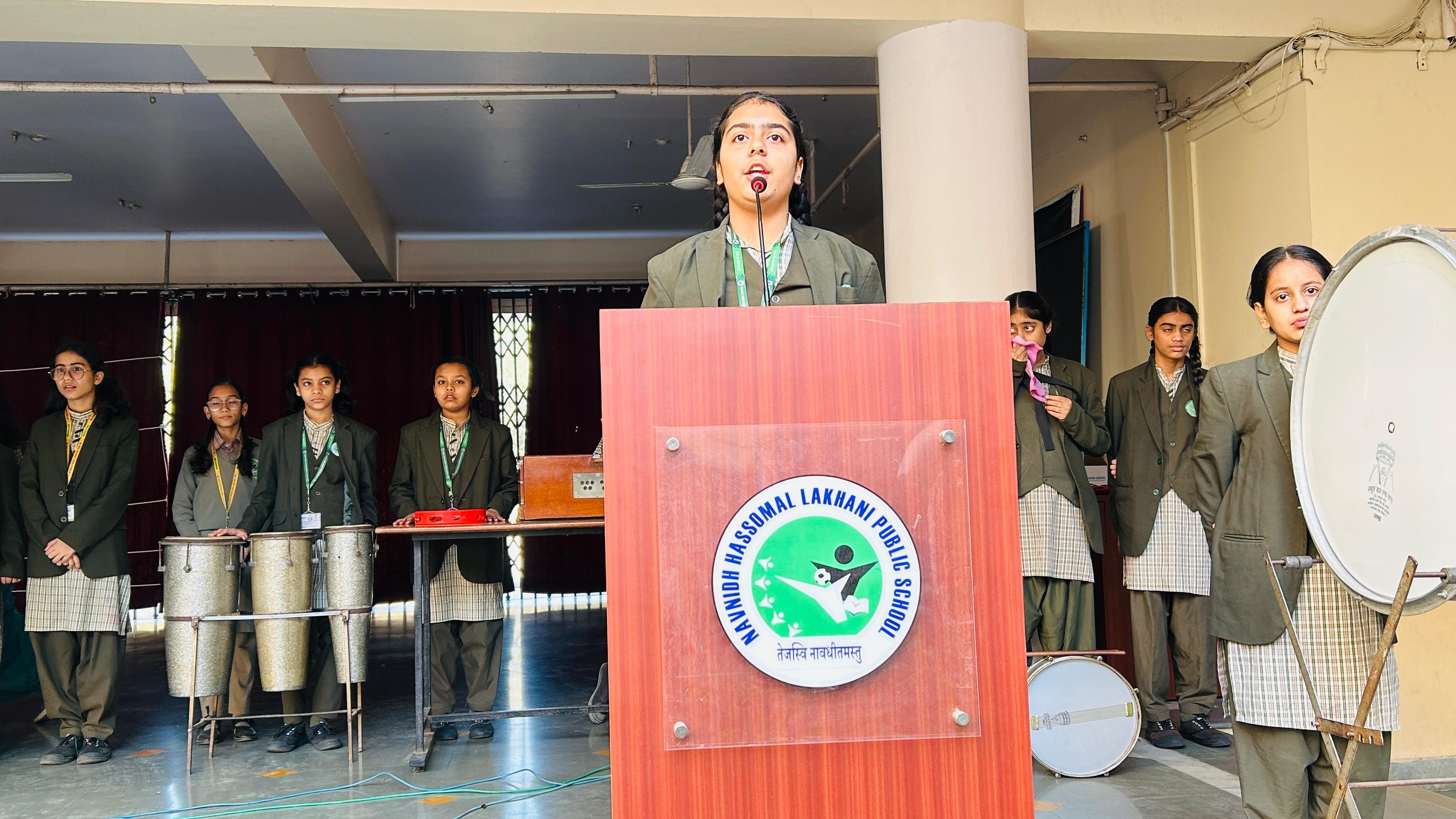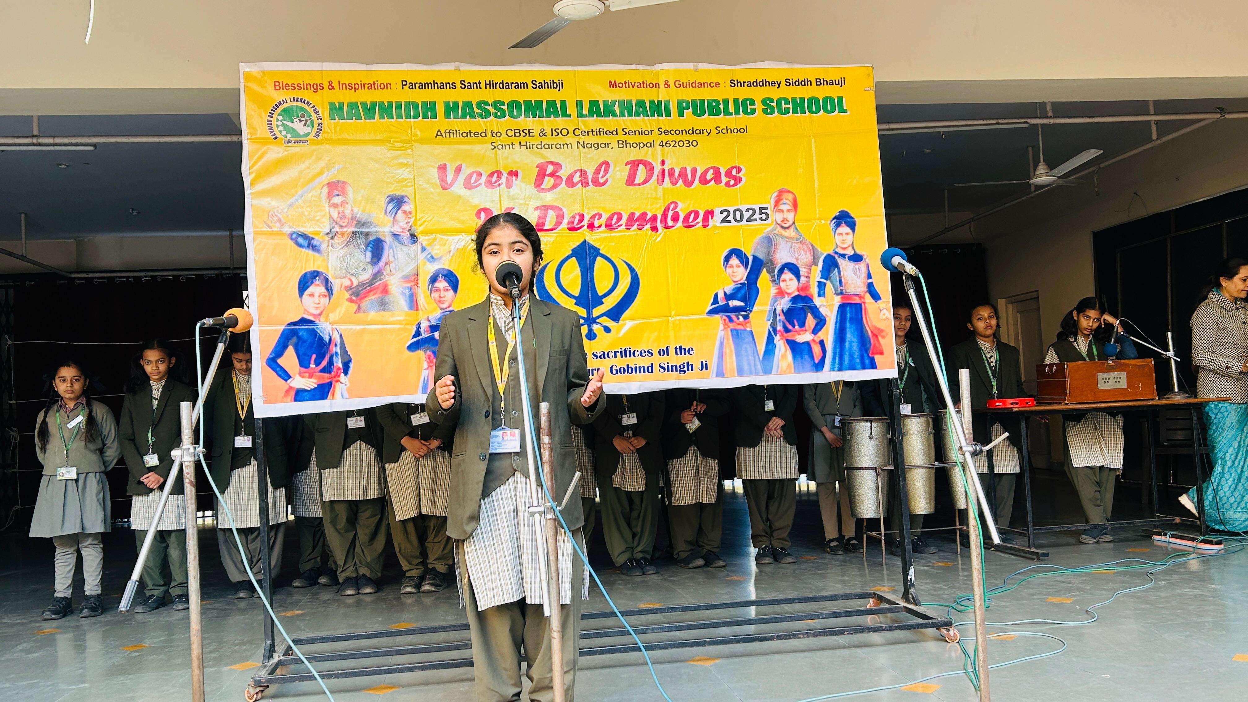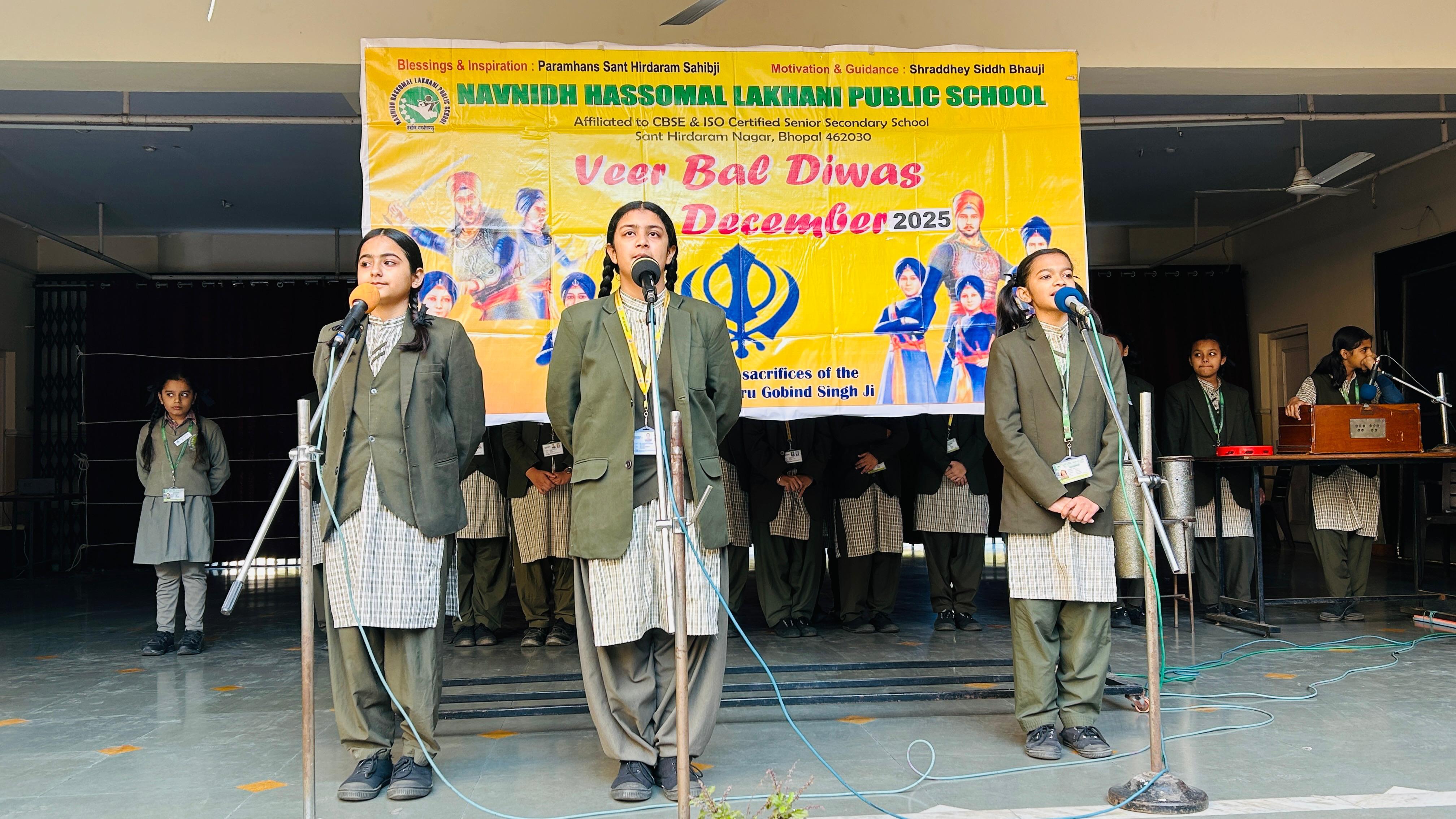 Navnidh Hassomal Lakhani Public School observed Veer Bal Diwas with great reverence and patriotic spirit to commemorate the unparalleled sacrifice of the Chaar Sahibzaade. The programme commenced with a sacred mantra and prayer, creating an atmosphere of peace, devotion, and reflection.