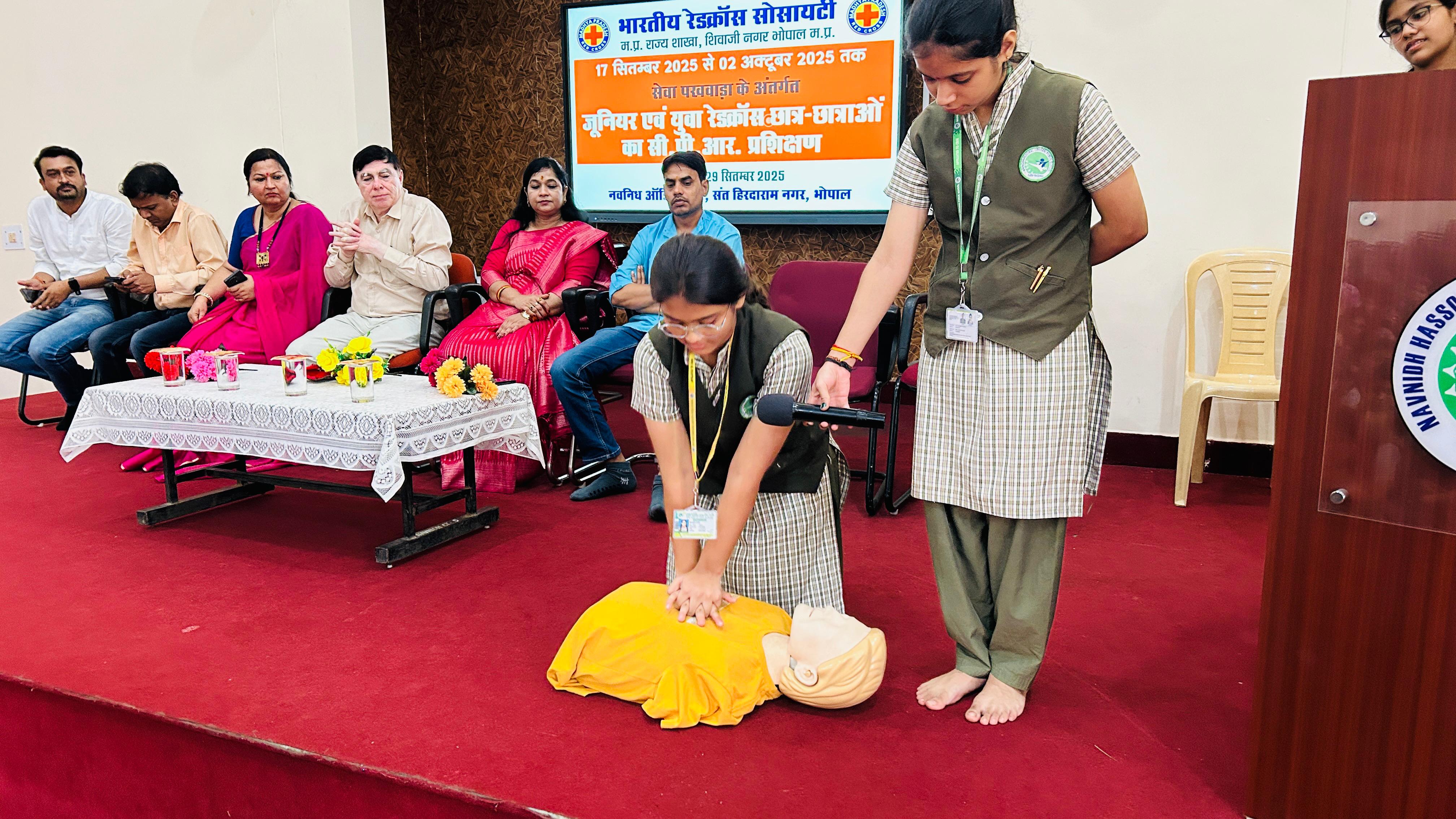 Navnidh Hassomal Lakhani Public School hosted a special CPR Training Session conducted by the Indian Red Cross Society, Madhya Pradesh State Branch under Seva Pakhwada.
