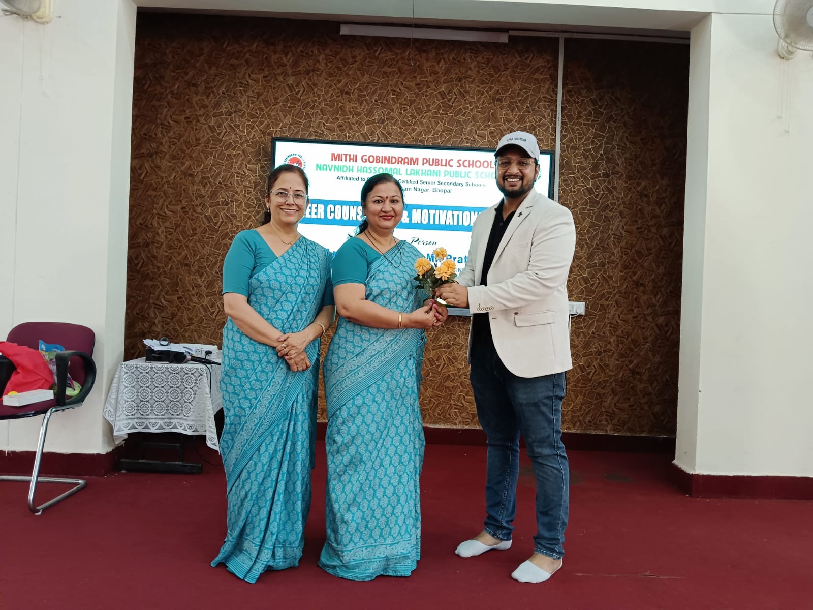 Navnidh Hassomal Lakhani Public School organized an insightful and interactive Career Counselling Session for the students of Classes IX and X. The session was conducted by Mr. Arpit Jain, Physics Educator, and Mr. Pratham Mishra, Business Evangelist at Unacademy, who captivated the audience with their dynamic and engaging style.