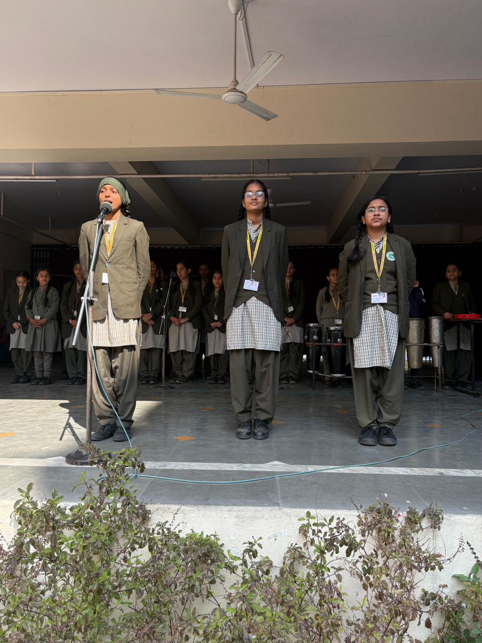 Students of Class VII — Ojasvi Gupta, Manvi Gill, and Shanu Baghel delivered meaningful speeches in Hindi, highlighting Swami Vivekananda’s thoughts on youth empowerment, character building, self-belief, discipline, and nation-building.