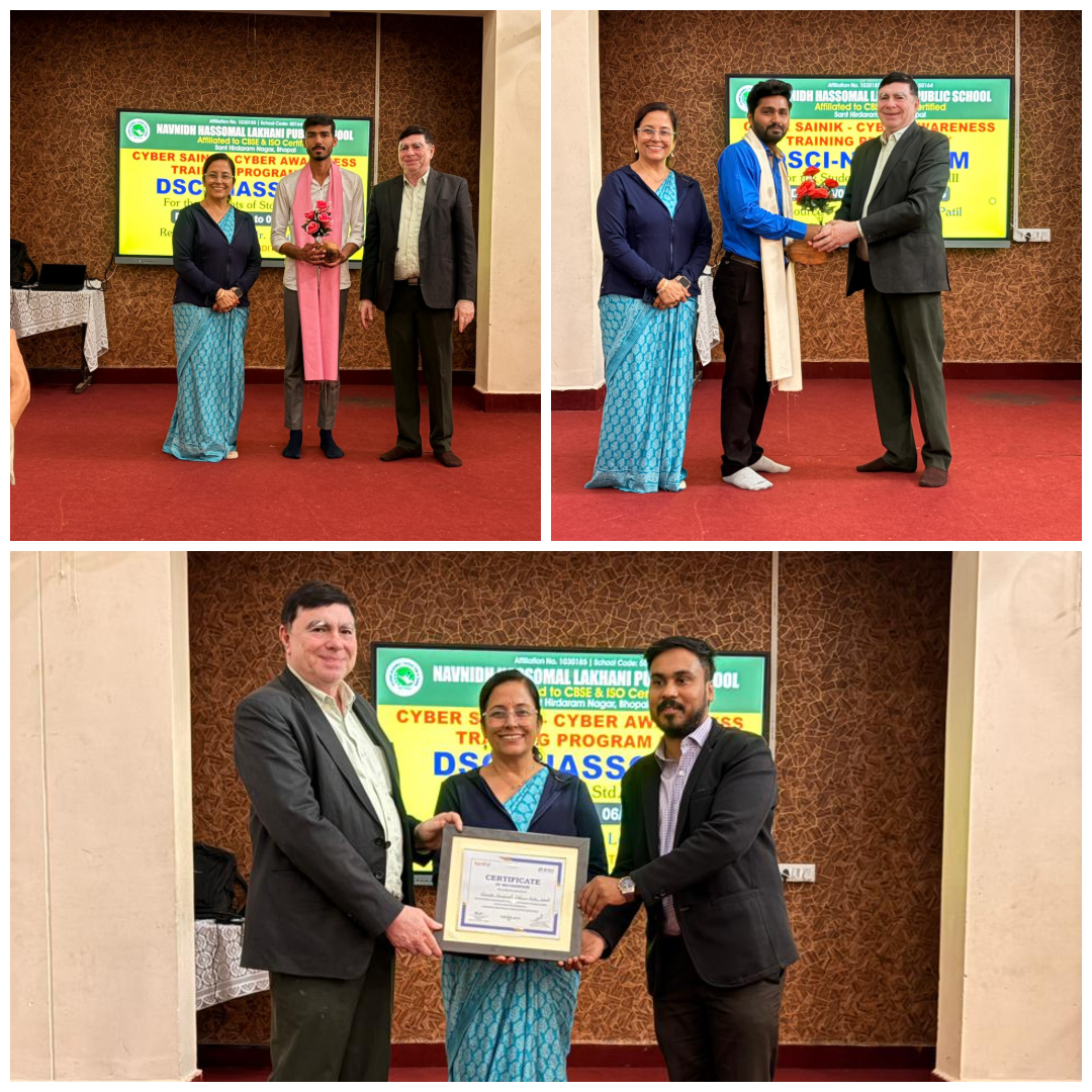 Navnidh Hassomal Lakhani Public School organized a three-day Cyber Security Awareness Session for students of Classes VI to VIII from 4th to 6th February 2026, in collaboration with the DSCI NASSCOM Technology Centre, Bhopal.