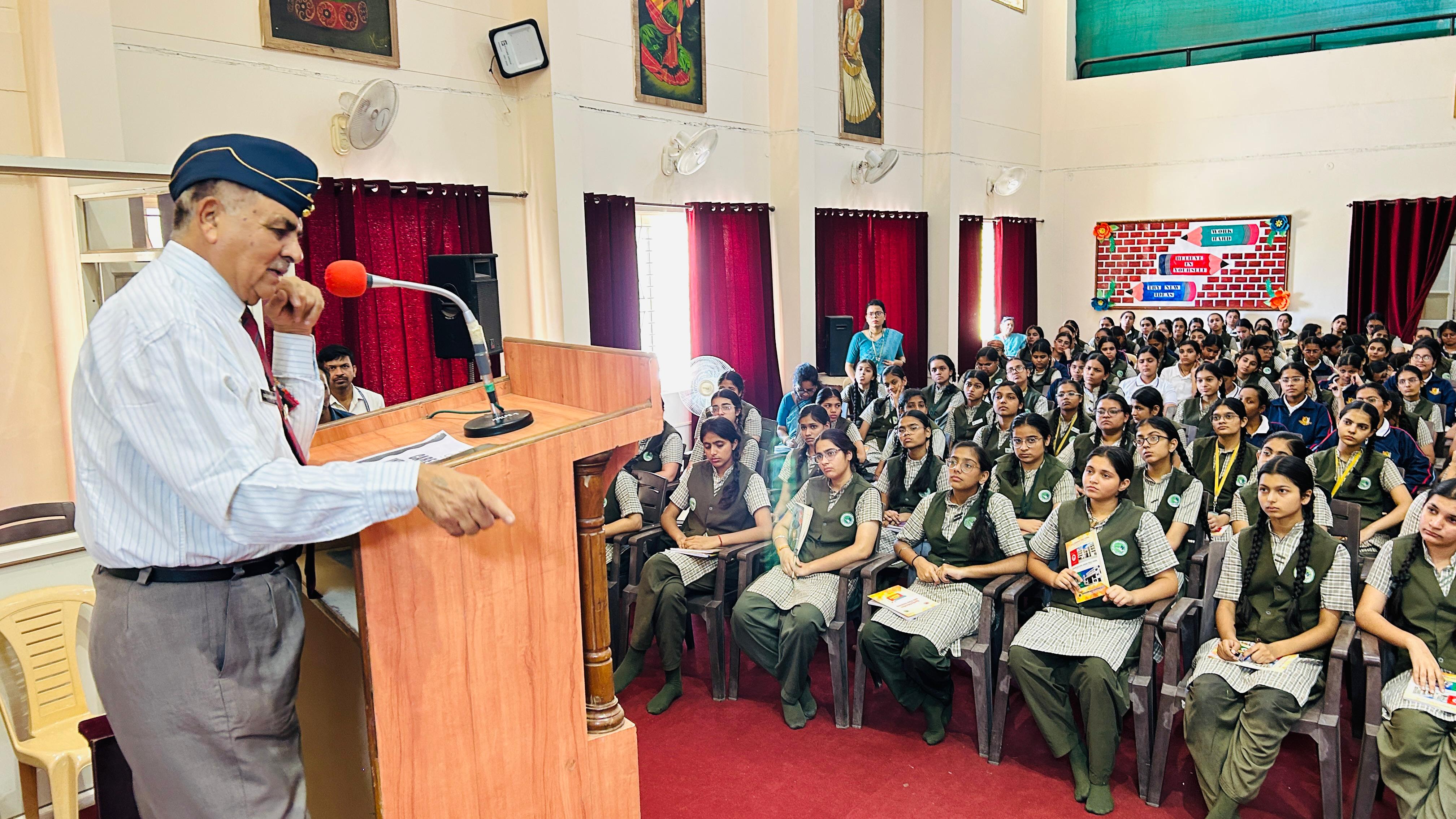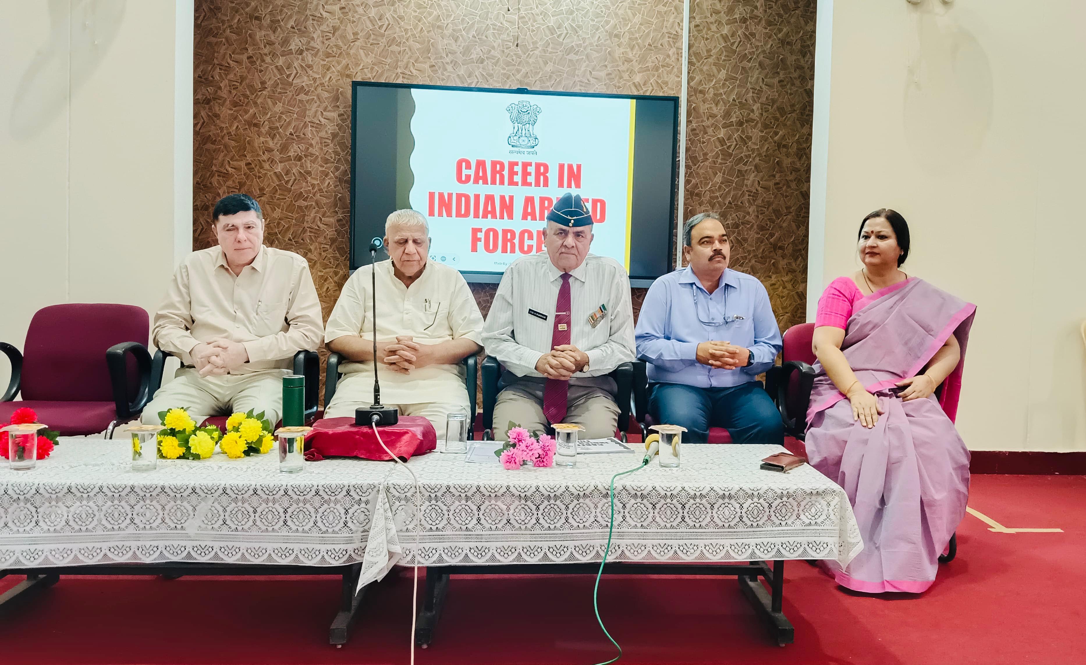 The event aimed to instill patriotism and guide students on career opportunities in the Indian Army, Navy, and Air Force. Col. Narayan Parvani, the keynote speaker, provided valuable insights into exams like NDA, CDS, and AFCAT, while emphasizing discipline, confidence, and leadership as key traits for aspirants.
